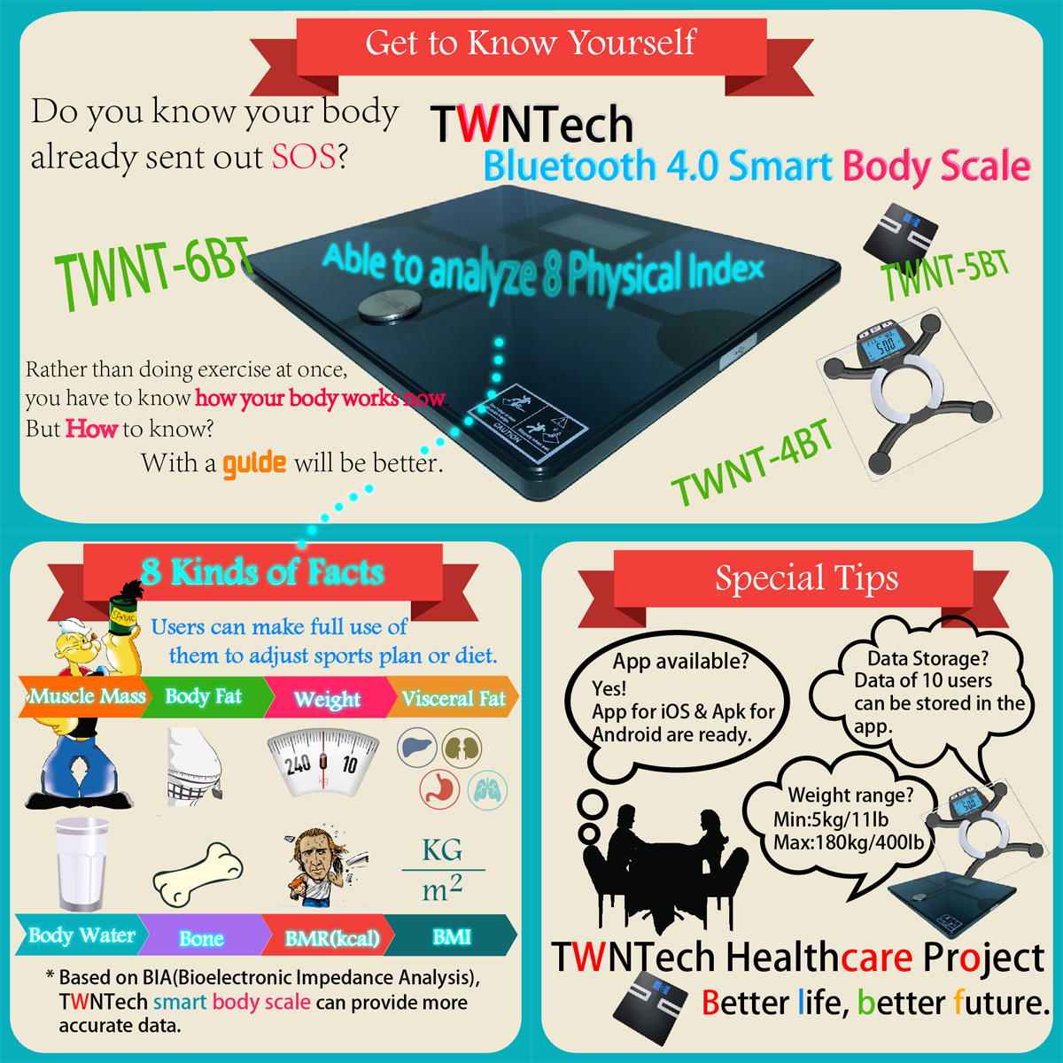 Bluetooth 4.0 Smart Body Scale